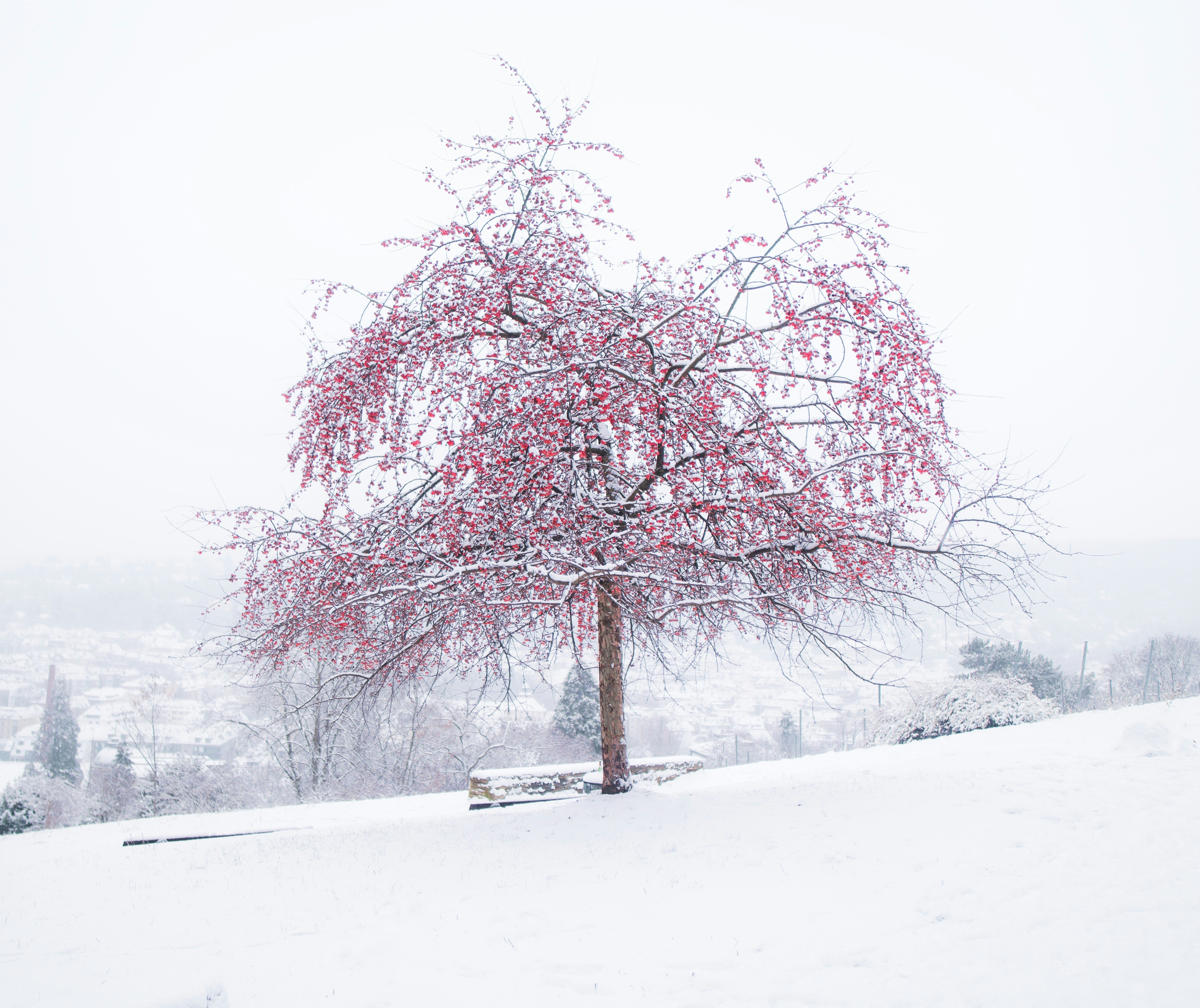 Pink Leaf Tree On Snow Covered Ground During Daytime Photo Free Image On Unsplash